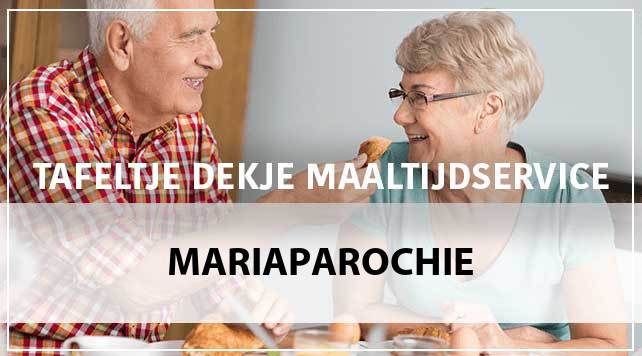 In deze gemeente kun je kiezen voor bijvoorbeeld Maaltijdservice.nl, Kantenklaarmaaltijden.nl, Vers Aan Tafel, Uitgekookt, Mealhero, Apetito. Deze bezorgmaaltijden moeten nog wel opgewarmd worden. Warme maaltijdbezorging in Mariaparochie wordt vaak gedaan door zorggroepen en organisaties voor maatschappelijk werk in Mariaparochie.